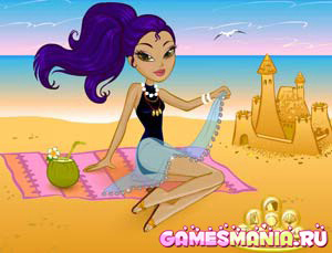 Открываем пляжный сезон. Подберем для девушки новую стильную прическу, цвет волос и цвет глаз. Сделаем ей пляжный макияж и примерим новую коллекцию модного бикини. Посредством клика мышки выбереаем следущие варианты. В первом случае-это бикини и украшения, представленные Парижским Домом Моды. Во-втором, бикини и обувь от ведущих дизайнеров Мадрида. И в-третьем, яркая коллекция бикини от немецких кутюрье. А с помощью разноцветной вкладки на фоне, Вы с легкостью можете поменять его цвет.