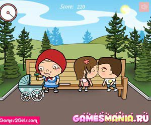 Парочка подростков присели на лавочку в сквере, чтобы проявить свои нежные чувства друг к другу. У них романтическое настроение и жизнь прекрасна, как никогда. Весна и все будто наполнено музыкой и счастьем. Но вот на лавочку рядом присела старушка. Ей поручили прогулять совсем маленького внука. И гармонии пришел конец. Как только она увидит, сто парочка целуется, она начинает кричать и ее бьет истерика. В ее стародавние времена такого не было. Девочка убегает, а мальчик остается один грустить. Помогите парочке и предупредите их. Кликните мышкой и удерживайте кнопку нажатой до того момента, пока старушка отвлечена заботой за внуком. Следите за временем.